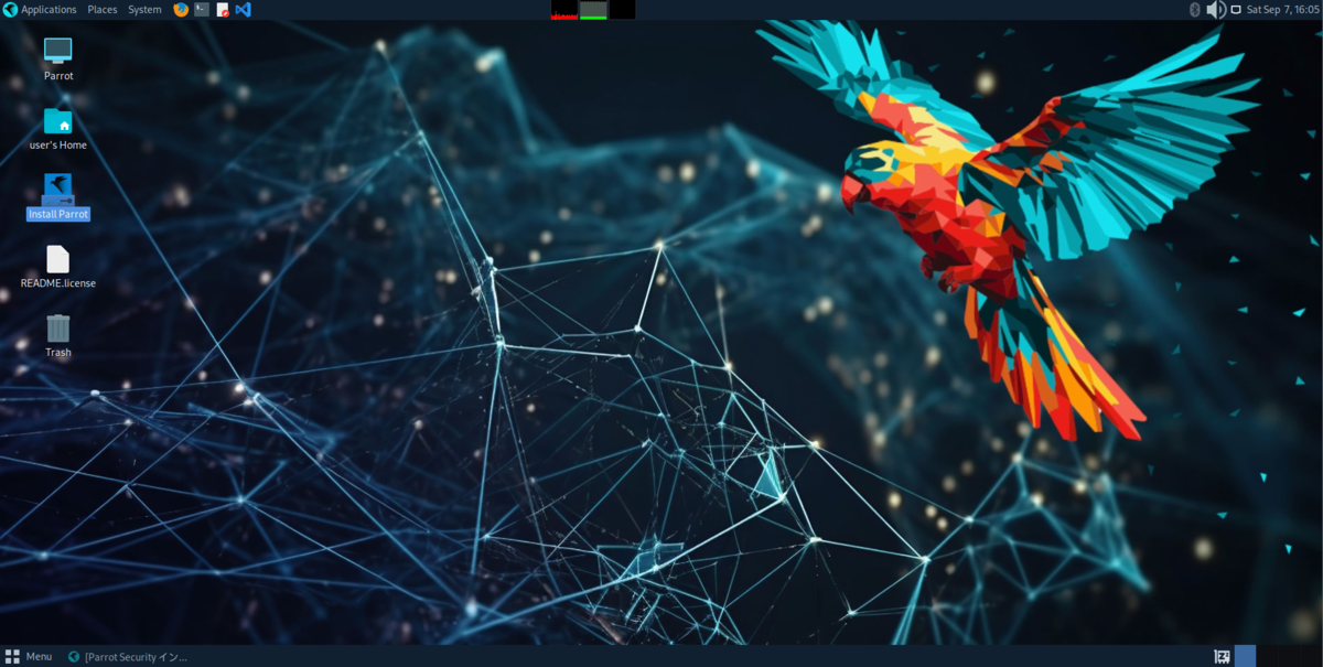 VMware を起動し,Desktop の Install Parrot を実行し,初期セットアップを行います.