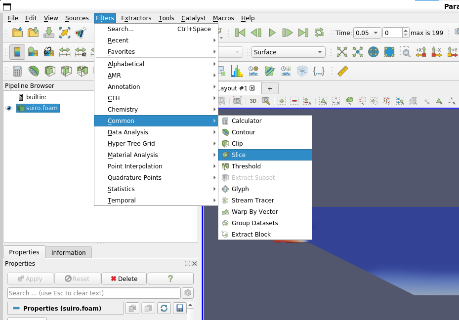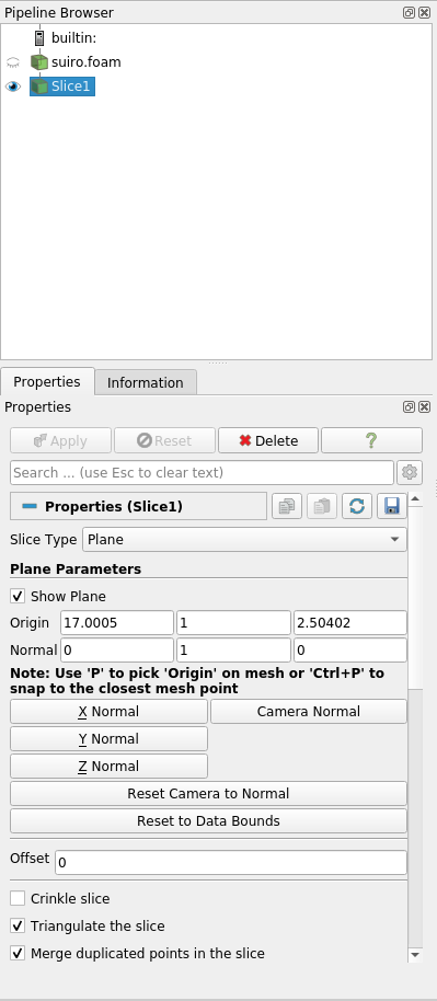 paraview を起動し,計算領域を横断する面を作成します.
